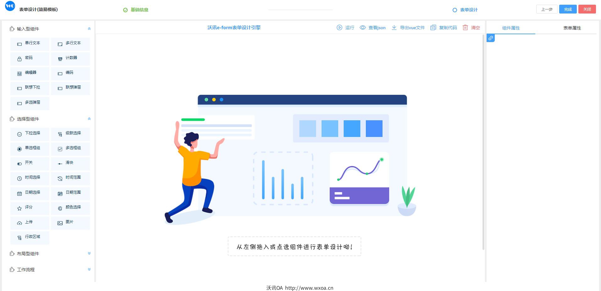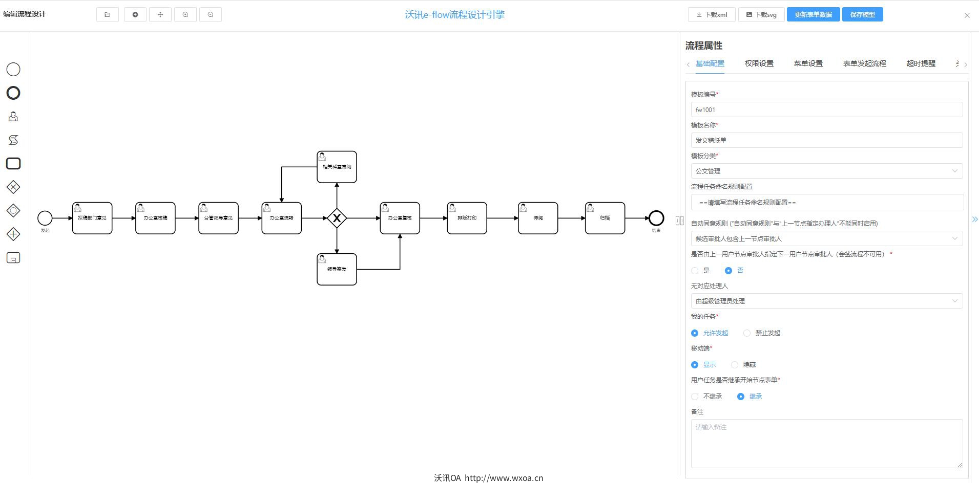 沃讯A6-OA协同办公系统之所以能脱颖而出,关键在于其强大的自定义流程引擎与灵活的表单设计功能,无代码设计平台,可视化操作界面,“拖拉拽”的操作方式,能够快速响应,深度适配跨境电商行业复杂多变的业务场景。